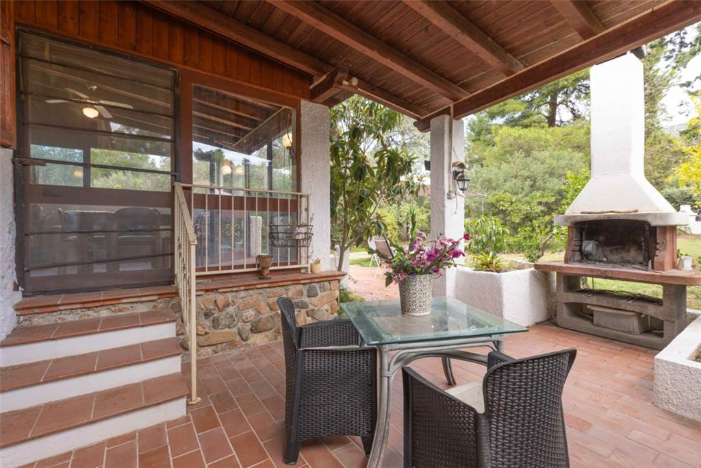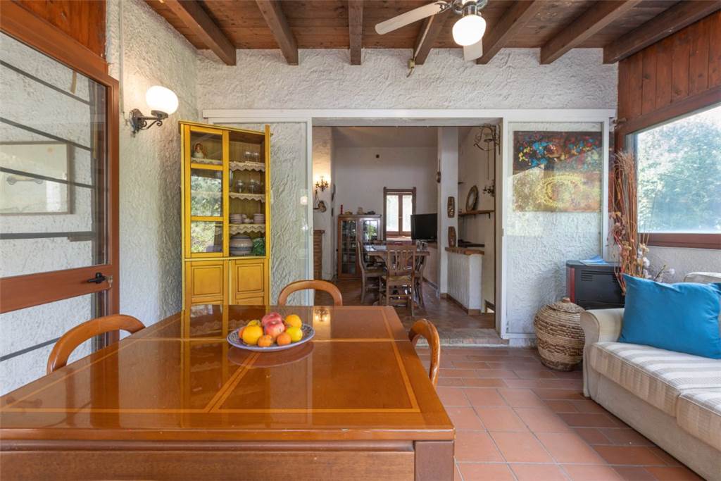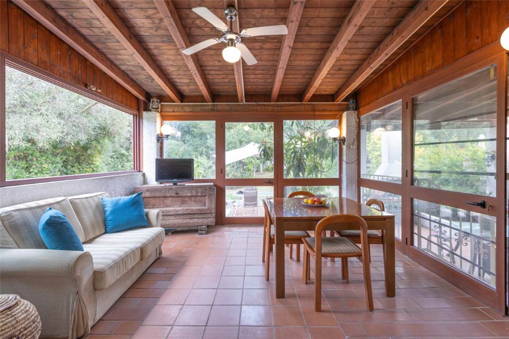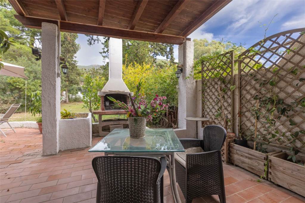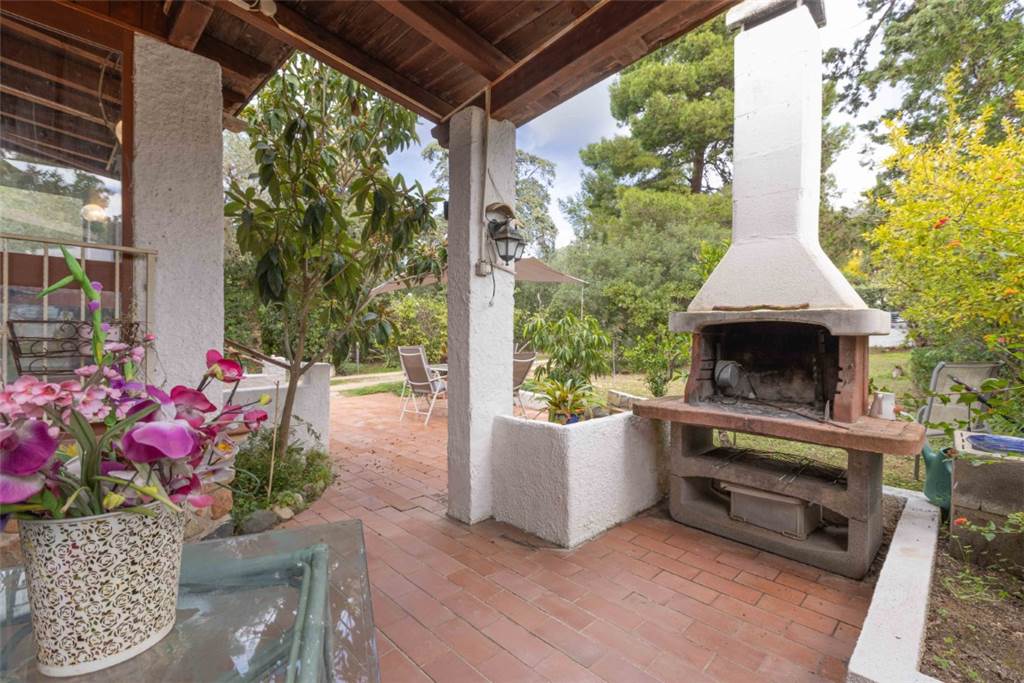 Il giardino, ampio e ben sfruttabile, offre la possibilità di realizzare una piscina oppure di essere allestito con un curato prato verde in continuità con la veranda, dove è presente anche un pratico barbecue.