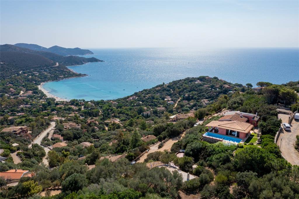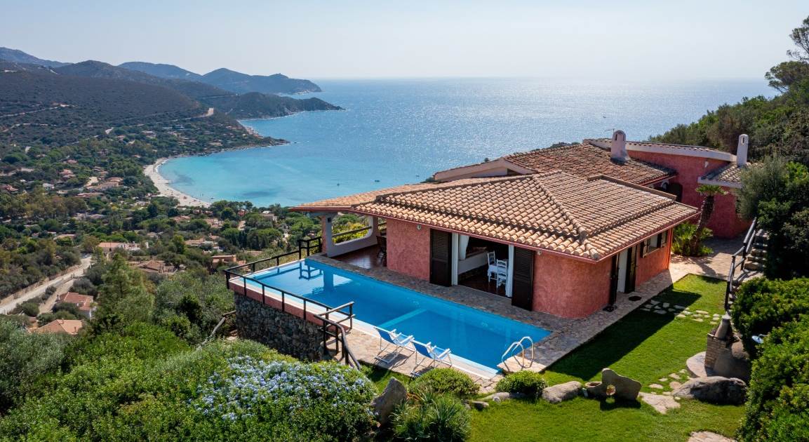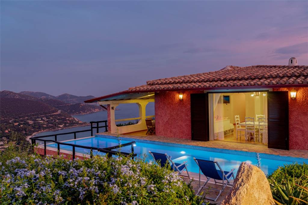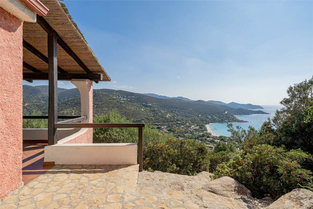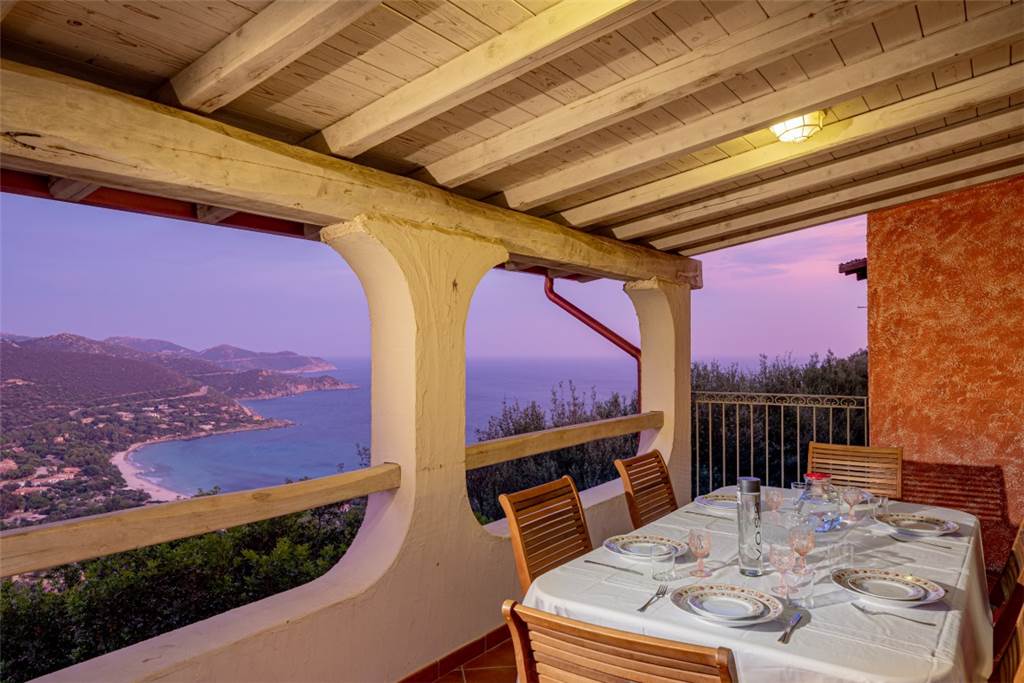 La vista? Semplicemente mozzafiato: un panorama a 180° sulla cala di Genn’e Mari, una delle perle del Sud Sardegna, dove cielo e mare si incontrano in un abbraccio infinito.
