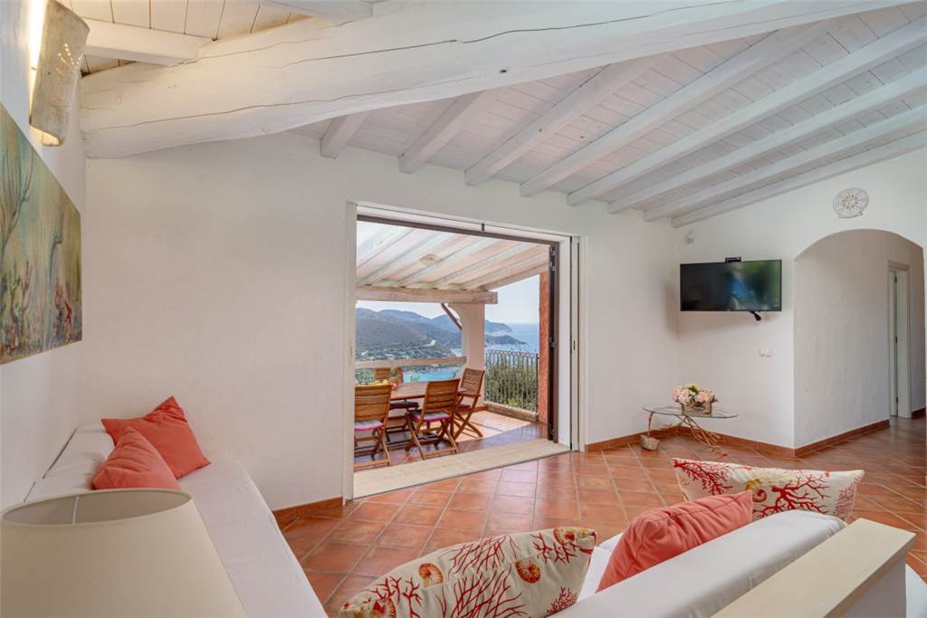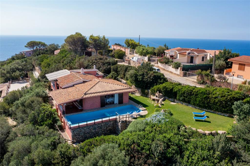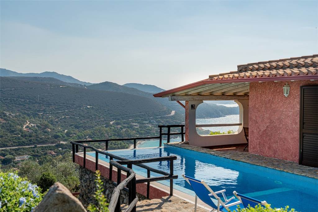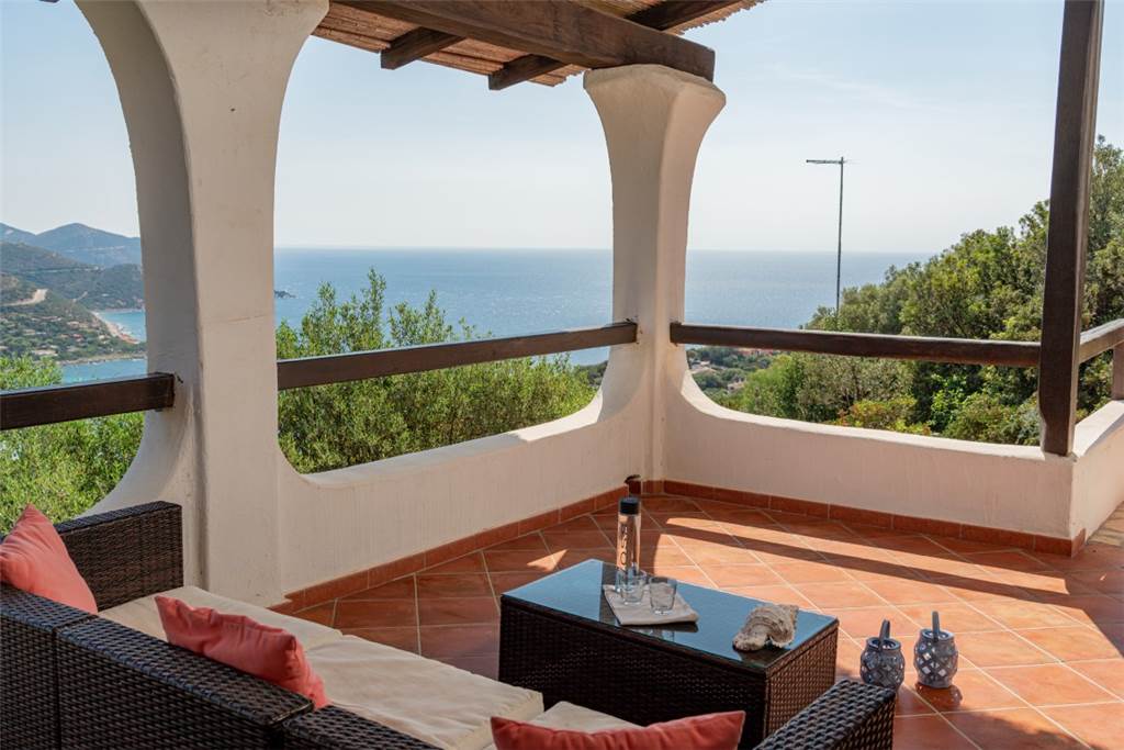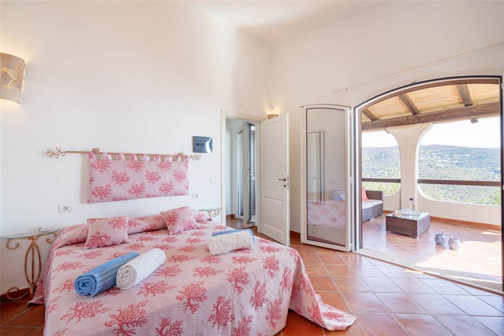 La vista? Semplicemente mozzafiato: un panorama a 180° sulla cala di Genn’e Mari, una delle perle del Sud Sardegna, dove cielo e mare si incontrano in un abbraccio infinito.