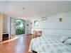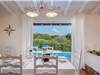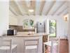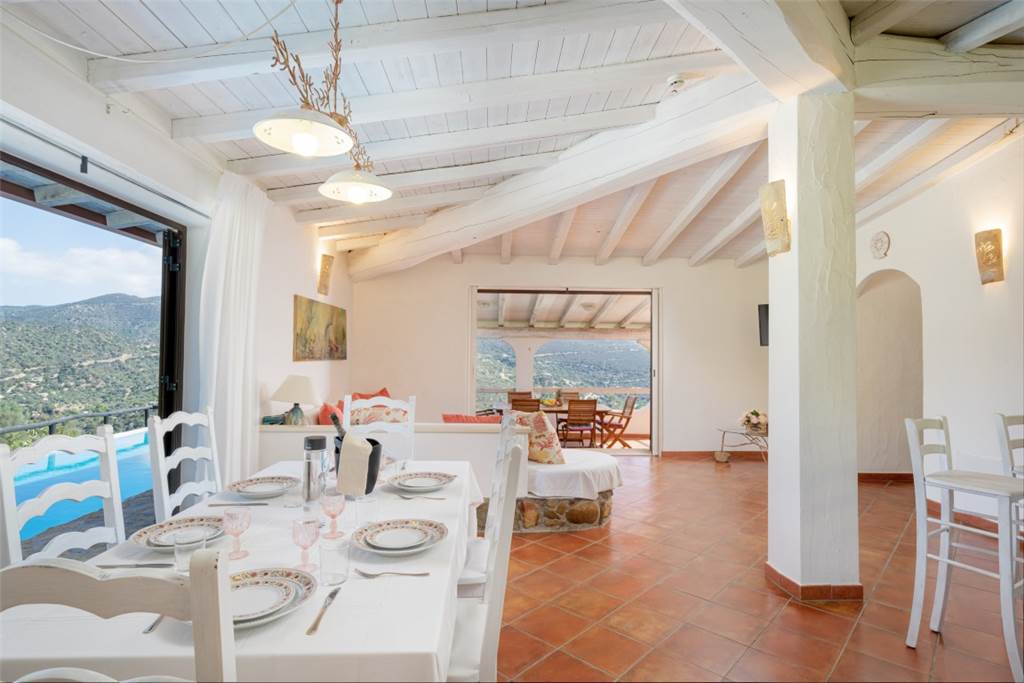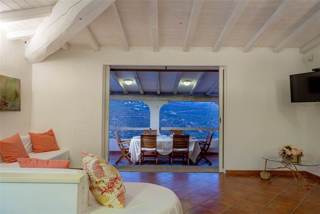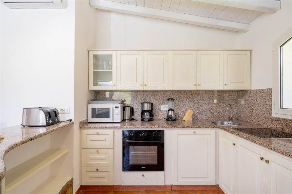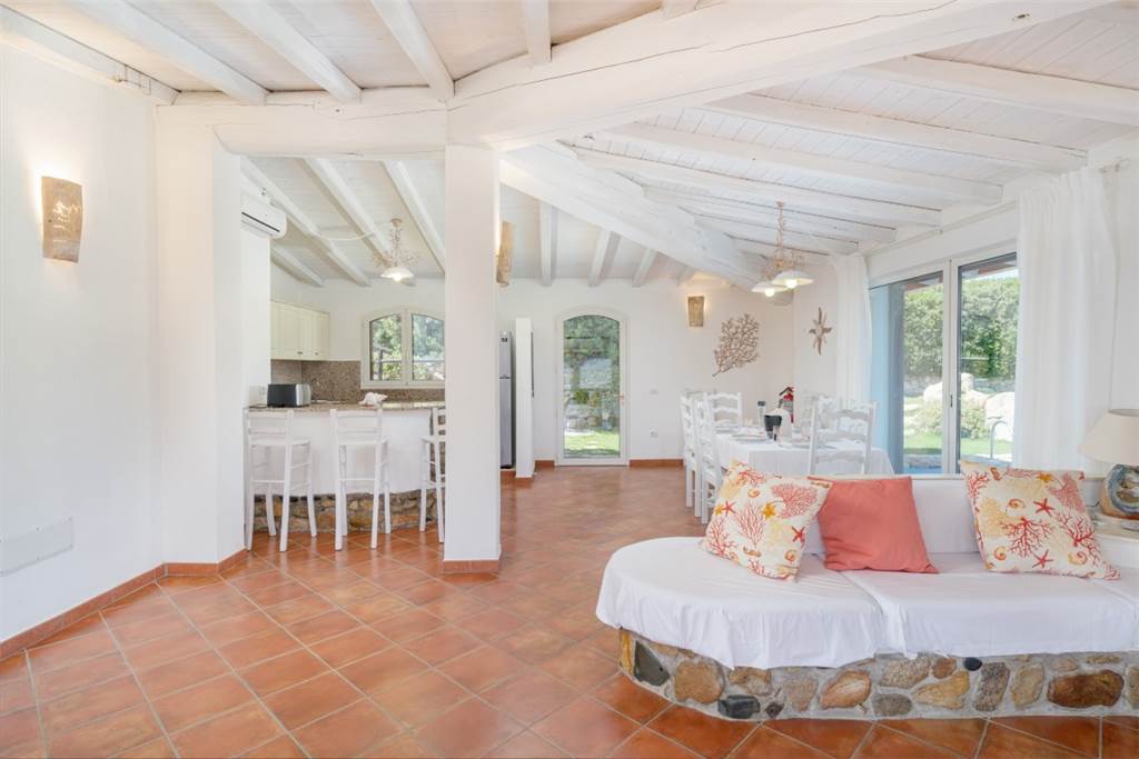 All’interno, lo spazio è stato pensato per il massimo comfort. Un luminoso open space accoglie gli ospiti con un’ampia zona pranzo, una cucina moderna e un angolo relax, tutto circondato da grandi vetrate che lasciano entrare luce e regalano scorci meravigliosi sulla piscina e sul mare.