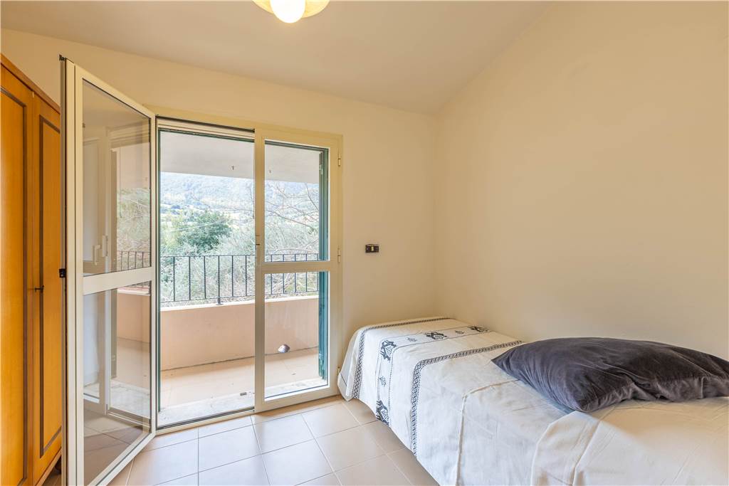 Piano Superiore è accessibile tramite una scala esterna coperta con terrazza ed ospita un appartamento indipendente. Qui si trovano quindi un secondo soggiorno con camino a vista, tre camere da letto, un bagno e un’ulteriore stanza per gli ospiti (ex cucina) con balcone privato.