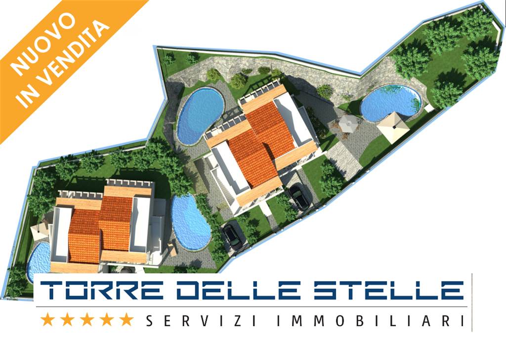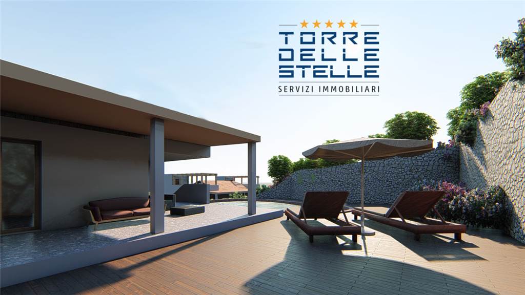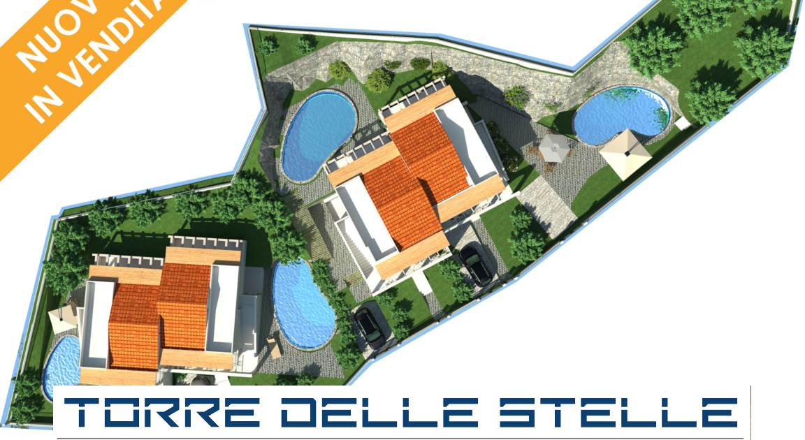 Le Ville con piscina di Torre delle Stelle. Sono edifici a basso consumo energetico e la struttura è concepita per minimizzare le dispersioni di energia, ottimizzando i risparmi energetici.