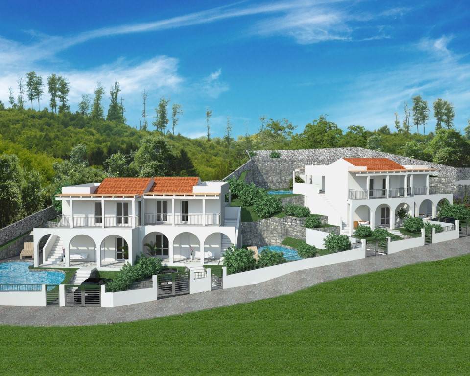 Ogni villa sarà caratterizzata da un’ampia zona giorno con cucina a vista, un bagno e due terrazze coperte dove poter comodamente soggiornare o mangiare all’esterno con una vista gradevole sul proprio giardino privato e la piscina. Tramite la scala interna o una seconda scala esterna, si accede alla zona notte in cui sono presenti due camere da letto, un bagno e altre due grandi terrazza che possono essere utilizzate anche come solarium.