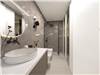 comunicazione con la terrazza a livello. Nella zona notte è presente la spaziosa camera da letto matrimoniale con bagno privato e cabina armadio, mentre nel disimpegno è presente un secondo bagno per gli ospiti.