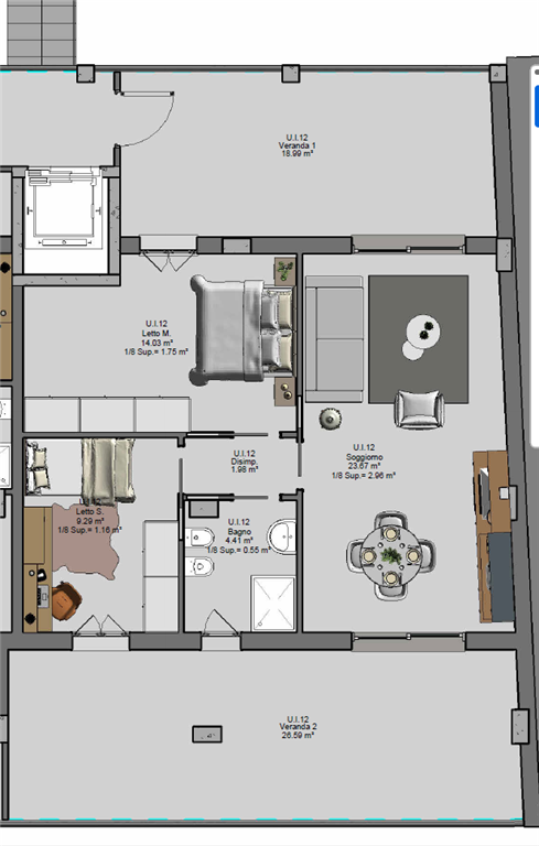 L'appartamento che proponiamo in vendita è ubicato al primo quarto e ultimo con ascensore ed è composto da un ampia zona living che comprende la zona di soggiorno in cui trovano comodamente spazio i divani e la parete attrezzata mentre sul lato opposto troviamo una spaziosa cucina a vista e il suo tavolo da pranzo. Dalla zona living, una ampia vetrata scorrevole, ci conduce a due magnifiche terrazze a livello ... non un balcone ma due terrazze a tutti gli effetti, profonda quasi 3 metri e di quasi 20 mq di superficie una e 26mq circa l'altra. Uno spazio comodo, elegante e funzionale che rappresenta la naturale prosecuzione della zona living e che sarà un prezioso alleato per una cena in famiglia o con amici e comunque per trascorrere piacevoli momenti di relax all'aria aperta. La zona notte è invece composta dalla camera matrimoniale, da un altra camera da letto singola, un bagno e il posto auto completa la proposta immobiliare.