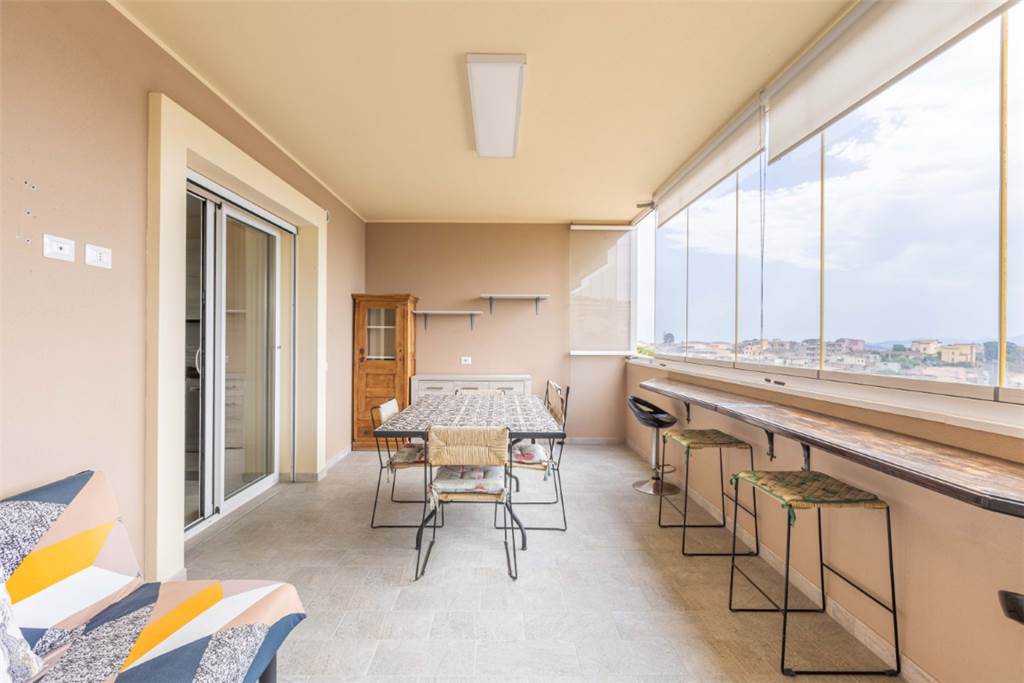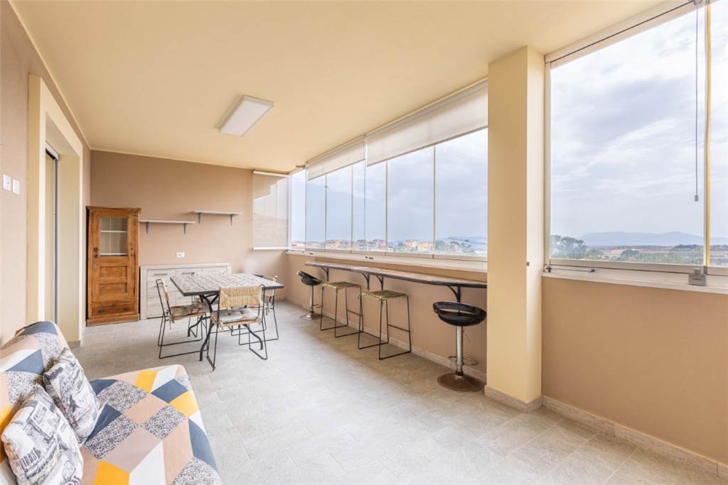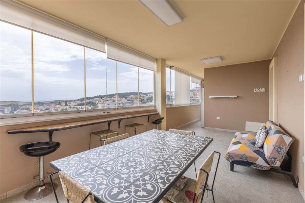Nel cuore di una zona residenziale tranquilla e riservata a Sinnai, proponiamo in vendita un raffinato appartamento al primo piano di un piccolo condominio, realizzato nel 2019 con materiali di pregio e particolare attenzione al design architettonico. Si viene accolti da un ampio soggiorno luminoso, perfetto per momenti di relax e convivialità, collegato a una cucina abitabile che si apre su una delle due spettacolari e panoramiche terrazze a livello, veri e propri giardini sospesi, chiusi con eleganti vetrate panoramiche che regalano luce naturale tutto l’anno e uno spazio vivibile in ogni stagione.