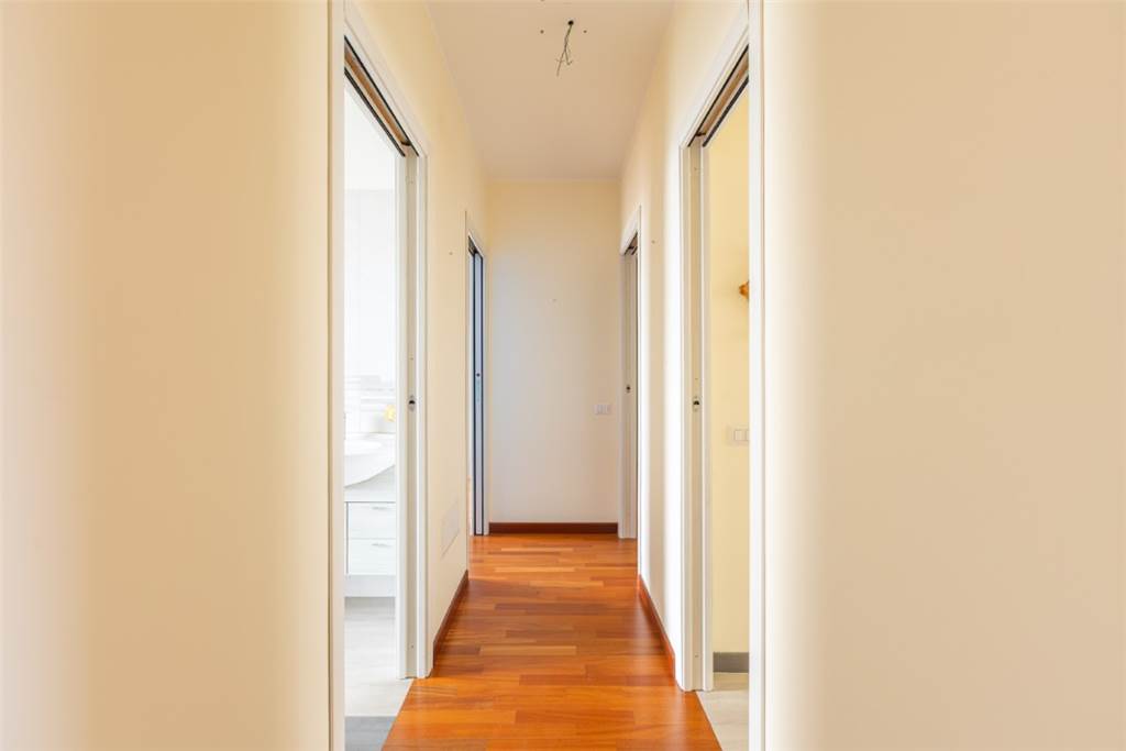 La zona notte ospita due comode camere da letto, un bagno moderno rifinito in ceramica e un pratico ripostiglio. Tutti gli ambienti sono impreziositi da un parquet di alta qualità, che dona calore e raffinatezza ad ogni stanza.